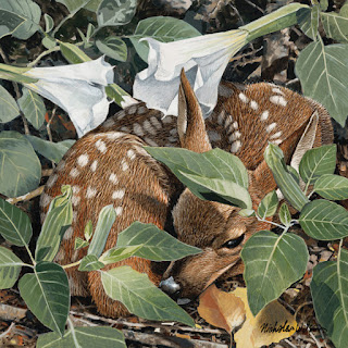 As I've mentioned before, occasionally while scrolling Facebook I will stumble on something artistic—visual art, music—that intrigues me. Today it was an artist whose work captures the life of the US Southwest, both in oils and in woodblock prints. At the end I include a very short video where he talks a bit about his unusual technique for painting fur. (Click the images to view them large.)